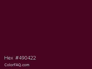 Hex #490422 Color is a very dark rose color and the nearest color is Castro #52001f. Hex code #490422 and RGB value is rgb(73,4,34). In RGB color space, this color is composed of 29% red, 2% green, 13% blue, In CMYK color space, this color is composed of 0% cyan, 95% magenta, 53% yellow , 71% black , In HSL color space, this color has a hue angle of 334° , 90% saturation and 15% lightness.