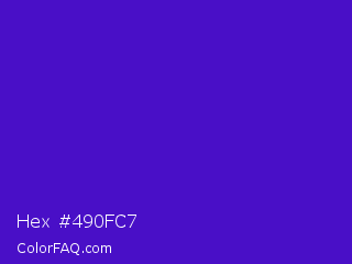 Hex #490fc7 Color is a normal indigo color and the nearest color is Interdimensional Blue #360ccc. Hex code #490fc7 and RGB value is rgb(73,15,199). In RGB color space, this color is composed of 29% red, 6% green, 78% blue, In CMYK color space, this color is composed of 63% cyan, 92% magenta, 0% yellow , 22% black , In HSL color space, this color has a hue angle of 259° , 86% saturation and 42% lightness.