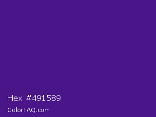 Hex #491589 Color is a normal violet color and the nearest color is Pixie Powder #391285. Hex code #491589 and RGB value is rgb(73,21,137). In RGB color space, this color is composed of 29% red, 8% green, 54% blue, In CMYK color space, this color is composed of 47% cyan, 85% magenta, 0% yellow , 46% black , In HSL color space, this color has a hue angle of 267° , 73% saturation and 31% lightness.