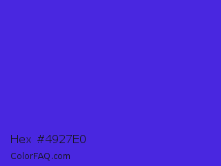 Hex #4927e0 Color is a normal indigo color and the nearest color is Han Purple #5218fa. Hex code #4927e0 and RGB value is rgb(73,39,224). In RGB color space, this color is composed of 29% red, 15% green, 88% blue, In CMYK color space, this color is composed of 67% cyan, 83% magenta, 0% yellow , 12% black , In HSL color space, this color has a hue angle of 251° , 75% saturation and 52% lightness.