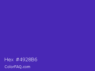 Hex #4928b6 Color is a normal indigo color and the nearest color is Ocean Blue #4f42b5. Hex code #4928b6 and RGB value is rgb(73,40,182). In RGB color space, this color is composed of 29% red, 16% green, 71% blue, In CMYK color space, this color is composed of 60% cyan, 78% magenta, 0% yellow , 29% black , In HSL color space, this color has a hue angle of 254° , 64% saturation and 44% lightness.