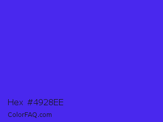 Hex #4928ee Color is a normal indigo color and the nearest color is Han Purple #5218fa. Hex code #4928ee and RGB value is rgb(73,40,238). In RGB color space, this color is composed of 29% red, 16% green, 93% blue, In CMYK color space, this color is composed of 69% cyan, 83% magenta, 0% yellow , 7% black , In HSL color space, this color has a hue angle of 250° , 85% saturation and 55% lightness.