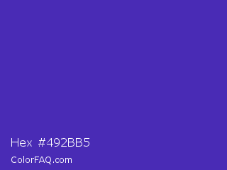 Hex #492bb5 Color is a normal indigo color and the nearest color is Ocean Blue #4f42b5. Hex code #492bb5 and RGB value is rgb(73,43,181). In RGB color space, this color is composed of 29% red, 17% green, 71% blue, In CMYK color space, this color is composed of 60% cyan, 76% magenta, 0% yellow , 29% black , In HSL color space, this color has a hue angle of 253° , 62% saturation and 44% lightness.