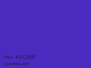 Hex #492bbf Color is a normal indigo color and the nearest color is Ocean Blue #4f42b5. Hex code #492bbf and RGB value is rgb(73,43,191). In RGB color space, this color is composed of 29% red, 17% green, 75% blue, In CMYK color space, this color is composed of 62% cyan, 77% magenta, 0% yellow , 25% black , In HSL color space, this color has a hue angle of 252° , 63% saturation and 46% lightness.