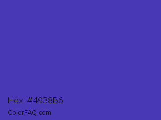 Hex #4938b6 Color is a normal indigo color and the nearest color is Ocean Blue #4f42b5. Hex code #4938b6 and RGB value is rgb(73,56,182). In RGB color space, this color is composed of 29% red, 22% green, 71% blue, In CMYK color space, this color is composed of 60% cyan, 69% magenta, 0% yellow , 29% black , In HSL color space, this color has a hue angle of 248° , 53% saturation and 47% lightness.