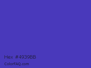 Hex #4939bb Color is a normal indigo color and the nearest color is Ocean Blue #4f42b5. Hex code #4939bb and RGB value is rgb(73,57,187). In RGB color space, this color is composed of 29% red, 22% green, 73% blue, In CMYK color space, this color is composed of 61% cyan, 70% magenta, 0% yellow , 27% black , In HSL color space, this color has a hue angle of 247° , 53% saturation and 48% lightness.