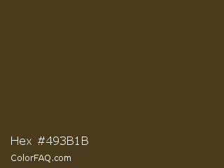 Hex #493b1b Color is a very dark orange color and the nearest color is Metallic Bronze #49371b. Hex code #493b1b and RGB value is rgb(73,59,27). In RGB color space, this color is composed of 29% red, 23% green, 11% blue, In CMYK color space, this color is composed of 0% cyan, 19% magenta, 63% yellow , 71% black , In HSL color space, this color has a hue angle of 42° , 46% saturation and 20% lightness.