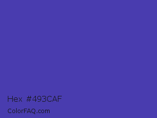 Hex #493caf Color is a normal indigo color and the nearest color is Ocean Blue #4f42b5. Hex code #493caf and RGB value is rgb(73,60,175). In RGB color space, this color is composed of 29% red, 24% green, 69% blue, In CMYK color space, this color is composed of 58% cyan, 66% magenta, 0% yellow , 31% black , In HSL color space, this color has a hue angle of 247° , 49% saturation and 46% lightness.
