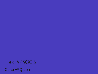 Hex #493cbe Color is a normal indigo color and the nearest color is Ocean Blue #4f42b5. Hex code #493cbe and RGB value is rgb(73,60,190). In RGB color space, this color is composed of 29% red, 24% green, 75% blue, In CMYK color space, this color is composed of 62% cyan, 68% magenta, 0% yellow , 25% black , In HSL color space, this color has a hue angle of 246° , 52% saturation and 49% lightness.