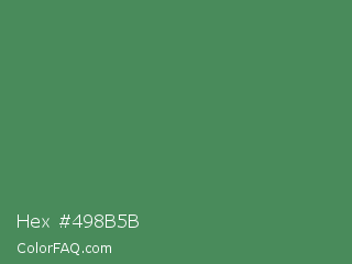 Hex #498b5b Color is a normal green color and the nearest color is Middle Green #4d8c57. Hex code #498b5b and RGB value is rgb(73,139,91). In RGB color space, this color is composed of 29% red, 55% green, 36% blue, In CMYK color space, this color is composed of 47% cyan, 0% magenta, 35% yellow , 45% black , In HSL color space, this color has a hue angle of 136° , 31% saturation and 42% lightness.