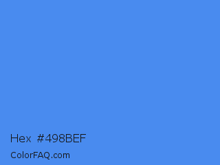 Hex #498bef Color is a light blue color and the nearest color is Blueberry #4f86f7. Hex code #498bef and RGB value is rgb(73,139,239). In RGB color space, this color is composed of 29% red, 55% green, 94% blue, In CMYK color space, this color is composed of 69% cyan, 42% magenta, 0% yellow , 6% black , In HSL color space, this color has a hue angle of 216° , 84% saturation and 61% lightness.