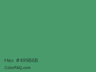 Hex #499b6b Color is a normal green color and the nearest color is Fruit Salad #4f9d5d. Hex code #499b6b and RGB value is rgb(73,155,107). In RGB color space, this color is composed of 29% red, 61% green, 42% blue, In CMYK color space, this color is composed of 53% cyan, 0% magenta, 31% yellow , 39% black , In HSL color space, this color has a hue angle of 145° , 36% saturation and 45% lightness.