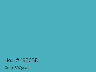 Hex #49b0bd Color is a normal cyan color and the nearest color is Pelorous #3eabbf. Hex code #49b0bd and RGB value is rgb(73,176,189). In RGB color space, this color is composed of 29% red, 69% green, 74% blue, In CMYK color space, this color is composed of 61% cyan, 7% magenta, 0% yellow , 26% black , In HSL color space, this color has a hue angle of 187° , 47% saturation and 51% lightness.