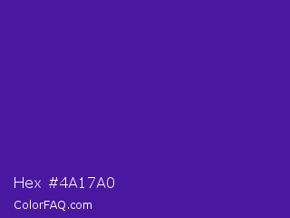 Hex #4a17a0 Color is a normal violet color and the nearest color is Daisy Bush #4f2398. Hex code #4a17a0 and RGB value is rgb(74,23,160). In RGB color space, this color is composed of 29% red, 9% green, 63% blue, In CMYK color space, this color is composed of 54% cyan, 86% magenta, 0% yellow , 37% black , In HSL color space, this color has a hue angle of 262° , 75% saturation and 36% lightness.