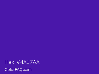 Hex #4a17aa Color is a normal violet color and the nearest color is Daisy Bush #4f2398. Hex code #4a17aa and RGB value is rgb(74,23,170). In RGB color space, this color is composed of 29% red, 9% green, 67% blue, In CMYK color space, this color is composed of 56% cyan, 86% magenta, 0% yellow , 33% black , In HSL color space, this color has a hue angle of 261° , 76% saturation and 38% lightness.