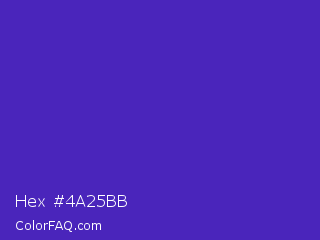 Hex #4a25bb Color is a normal indigo color and the nearest color is Purple Heart Crayola #652dc1. Hex code #4a25bb and RGB value is rgb(74,37,187). In RGB color space, this color is composed of 29% red, 15% green, 73% blue, In CMYK color space, this color is composed of 60% cyan, 80% magenta, 0% yellow , 27% black , In HSL color space, this color has a hue angle of 255° , 67% saturation and 44% lightness.