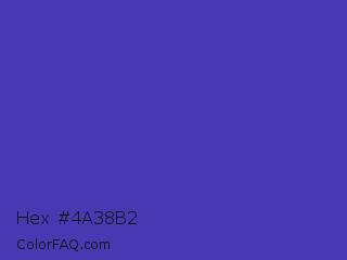 Hex #4a38b2 Color is a normal indigo color and the nearest color is Ocean Blue #4f42b5. Hex code #4a38b2 and RGB value is rgb(74,56,178). In RGB color space, this color is composed of 29% red, 22% green, 70% blue, In CMYK color space, this color is composed of 58% cyan, 69% magenta, 0% yellow , 30% black , In HSL color space, this color has a hue angle of 249° , 52% saturation and 46% lightness.