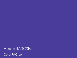 Hex #4a3c9b Color is a normal indigo color and the nearest color is Gigas #523c94. Hex code #4a3c9b and RGB value is rgb(74,60,155). In RGB color space, this color is composed of 29% red, 24% green, 61% blue, In CMYK color space, this color is composed of 52% cyan, 61% magenta, 0% yellow , 39% black , In HSL color space, this color has a hue angle of 249° , 44% saturation and 42% lightness.