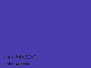 Hex #4a3caf Color is a normal indigo color and the nearest color is Ocean Blue #4f42b5. Hex code #4a3caf and RGB value is rgb(74,60,175). In RGB color space, this color is composed of 29% red, 24% green, 69% blue, In CMYK color space, this color is composed of 58% cyan, 66% magenta, 0% yellow , 31% black , In HSL color space, this color has a hue angle of 247° , 49% saturation and 46% lightness.