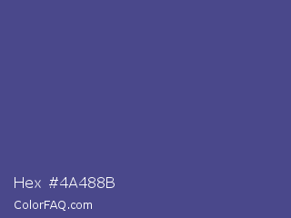Hex #4a488b Color is a normal indigo color and the nearest color is Dark Slate Blue #483d8b. Hex code #4a488b and RGB value is rgb(74,72,139). In RGB color space, this color is composed of 29% red, 28% green, 55% blue, In CMYK color space, this color is composed of 47% cyan, 48% magenta, 0% yellow , 45% black , In HSL color space, this color has a hue angle of 242° , 32% saturation and 41% lightness.