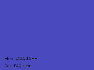 Hex #4a4abe Color is a normal blue color and the nearest color is Ocean Blue #4f42b5. Hex code #4a4abe and RGB value is rgb(74,74,190). In RGB color space, this color is composed of 29% red, 29% green, 75% blue, In CMYK color space, this color is composed of 61% cyan, 61% magenta, 0% yellow , 25% black , In HSL color space, this color has a hue angle of 240° , 47% saturation and 52% lightness.