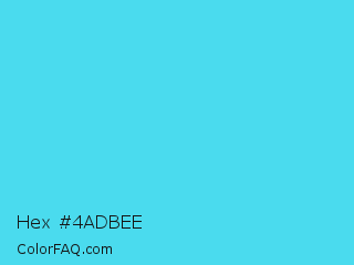 Hex #4adbee Color is a light cyan color and the nearest color is Turquoise #40e0d0. Hex code #4adbee and RGB value is rgb(74,219,238). In RGB color space, this color is composed of 29% red, 86% green, 93% blue, In CMYK color space, this color is composed of 69% cyan, 8% magenta, 0% yellow , 7% black , In HSL color space, this color has a hue angle of 187° , 83% saturation and 61% lightness.