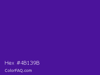 Hex #4b139b Color is a normal violet color and the nearest color is Daisy Bush #4f2398. Hex code #4b139b and RGB value is rgb(75,19,155). In RGB color space, this color is composed of 29% red, 7% green, 61% blue, In CMYK color space, this color is composed of 52% cyan, 88% magenta, 0% yellow , 39% black , In HSL color space, this color has a hue angle of 265° , 78% saturation and 34% lightness.