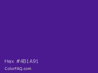 Hex #4b1a91 Color is a normal violet color and the nearest color is Daisy Bush #4f2398. Hex code #4b1a91 and RGB value is rgb(75,26,145). In RGB color space, this color is composed of 29% red, 10% green, 57% blue, In CMYK color space, this color is composed of 48% cyan, 82% magenta, 0% yellow , 43% black , In HSL color space, this color has a hue angle of 265° , 70% saturation and 34% lightness.