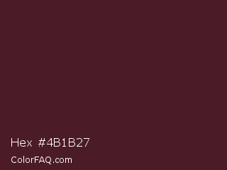 Hex #4b1b27 Color is a very dark red color and the nearest color is Crater Brown #462425. Hex code #4b1b27 and RGB value is rgb(75,27,39). In RGB color space, this color is composed of 29% red, 11% green, 15% blue, In CMYK color space, this color is composed of 0% cyan, 64% magenta, 48% yellow , 71% black , In HSL color space, this color has a hue angle of 345° , 47% saturation and 20% lightness.