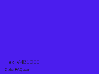 Hex #4b1dee Color is a normal indigo color and the nearest color is Han Purple #5218fa. Hex code #4b1dee and RGB value is rgb(75,29,238). In RGB color space, this color is composed of 29% red, 11% green, 93% blue, In CMYK color space, this color is composed of 68% cyan, 88% magenta, 0% yellow , 7% black , In HSL color space, this color has a hue angle of 253° , 86% saturation and 52% lightness.