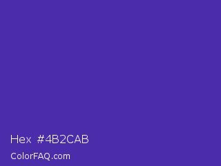 Hex #4b2cab Color is a normal indigo color and the nearest color is Daisy Bush #4f2398. Hex code #4b2cab and RGB value is rgb(75,44,171). In RGB color space, this color is composed of 29% red, 17% green, 67% blue, In CMYK color space, this color is composed of 56% cyan, 74% magenta, 0% yellow , 33% black , In HSL color space, this color has a hue angle of 255° , 59% saturation and 42% lightness.