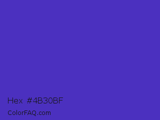 Hex #4b30bf Color is a normal indigo color and the nearest color is Ocean Blue #4f42b5. Hex code #4b30bf and RGB value is rgb(75,48,191). In RGB color space, this color is composed of 29% red, 19% green, 75% blue, In CMYK color space, this color is composed of 61% cyan, 75% magenta, 0% yellow , 25% black , In HSL color space, this color has a hue angle of 251° , 60% saturation and 47% lightness.