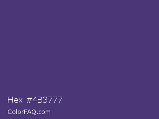 Hex #4b3777 Color is a normal indigo color and the nearest color is Regalia #522d80. Hex code #4b3777 and RGB value is rgb(75,55,119). In RGB color space, this color is composed of 29% red, 22% green, 47% blue, In CMYK color space, this color is composed of 37% cyan, 54% magenta, 0% yellow , 53% black , In HSL color space, this color has a hue angle of 259° , 37% saturation and 34% lightness.