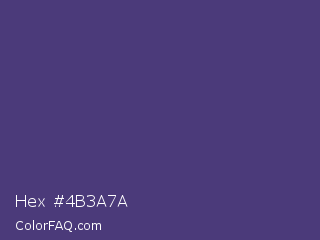 Hex #4b3a7a Color is a normal indigo color and the nearest color is Cyber Grape #58427c. Hex code #4b3a7a and RGB value is rgb(75,58,122). In RGB color space, this color is composed of 29% red, 23% green, 48% blue, In CMYK color space, this color is composed of 39% cyan, 52% magenta, 0% yellow , 52% black , In HSL color space, this color has a hue angle of 256° , 36% saturation and 35% lightness.