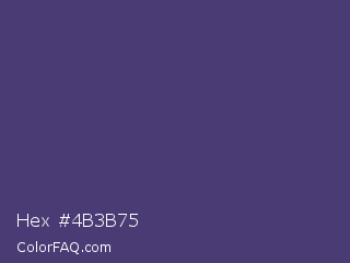 Hex #4b3b75 Color is a normal indigo color and the nearest color is Cyber Grape #58427c. Hex code #4b3b75 and RGB value is rgb(75,59,117). In RGB color space, this color is composed of 29% red, 23% green, 46% blue, In CMYK color space, this color is composed of 36% cyan, 50% magenta, 0% yellow , 54% black , In HSL color space, this color has a hue angle of 257° , 33% saturation and 35% lightness.