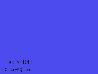 Hex #4b4bee Color is a light blue color and the nearest color is Majorelle Blue #6050dc. Hex code #4b4bee and RGB value is rgb(75,75,238). In RGB color space, this color is composed of 29% red, 29% green, 93% blue, In CMYK color space, this color is composed of 68% cyan, 68% magenta, 0% yellow , 7% black , In HSL color space, this color has a hue angle of 240° , 83% saturation and 61% lightness.