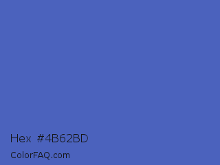 Hex #4b62bd Color is a normal blue color and the nearest color is Indigo #4f69c6. Hex code #4b62bd and RGB value is rgb(75,98,189). In RGB color space, this color is composed of 29% red, 38% green, 74% blue, In CMYK color space, this color is composed of 60% cyan, 48% magenta, 0% yellow , 26% black , In HSL color space, this color has a hue angle of 228° , 46% saturation and 52% lightness.