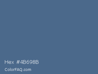 Hex #4b698b Color is a normal blue color and the nearest color is Bismark #497183. Hex code #4b698b and RGB value is rgb(75,105,139). In RGB color space, this color is composed of 29% red, 41% green, 55% blue, In CMYK color space, this color is composed of 46% cyan, 24% magenta, 0% yellow , 45% black , In HSL color space, this color has a hue angle of 212° , 30% saturation and 42% lightness.