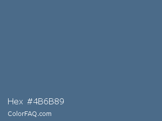 Hex #4b6b89 Color is a normal blue color and the nearest color is Bismark #497183. Hex code #4b6b89 and RGB value is rgb(75,107,137). In RGB color space, this color is composed of 29% red, 42% green, 54% blue, In CMYK color space, this color is composed of 45% cyan, 22% magenta, 0% yellow , 46% black , In HSL color space, this color has a hue angle of 209° , 29% saturation and 42% lightness.