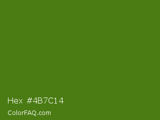 Hex #4b7c14 Color is a dark green color and the nearest color is Green Leaf #436a0d. Hex code #4b7c14 and RGB value is rgb(75,124,20). In RGB color space, this color is composed of 29% red, 49% green, 8% blue, In CMYK color space, this color is composed of 40% cyan, 0% magenta, 84% yellow , 51% black , In HSL color space, this color has a hue angle of 88° , 72% saturation and 28% lightness.
