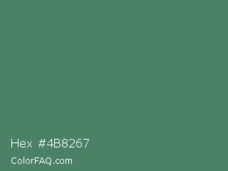 Hex #4b8267 Color is a normal green color and the nearest color is Como #517c66. Hex code #4b8267 and RGB value is rgb(75,130,103). In RGB color space, this color is composed of 29% red, 51% green, 40% blue, In CMYK color space, this color is composed of 42% cyan, 0% magenta, 21% yellow , 49% black , In HSL color space, this color has a hue angle of 151° , 27% saturation and 40% lightness.