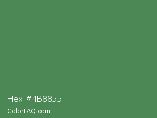 Hex #4b8855 Color is a normal green color and the nearest color is Middle Green #4d8c57. Hex code #4b8855 and RGB value is rgb(75,136,85). In RGB color space, this color is composed of 29% red, 53% green, 33% blue, In CMYK color space, this color is composed of 45% cyan, 0% magenta, 38% yellow , 47% black , In HSL color space, this color has a hue angle of 130° , 29% saturation and 41% lightness.