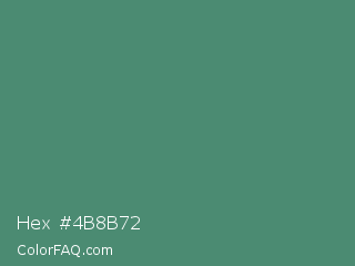 Hex #4b8b72 Color is a normal green color and the nearest color is Viridian #40826d. Hex code #4b8b72 and RGB value is rgb(75,139,114). In RGB color space, this color is composed of 29% red, 55% green, 45% blue, In CMYK color space, this color is composed of 46% cyan, 0% magenta, 18% yellow , 45% black , In HSL color space, this color has a hue angle of 157° , 30% saturation and 42% lightness.
