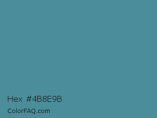 Hex #4b8e9b Color is a normal cyan color and the nearest color is Wedgewood #4e7f9e. Hex code #4b8e9b and RGB value is rgb(75,142,155). In RGB color space, this color is composed of 29% red, 56% green, 61% blue, In CMYK color space, this color is composed of 52% cyan, 8% magenta, 0% yellow , 39% black , In HSL color space, this color has a hue angle of 190° , 35% saturation and 45% lightness.
