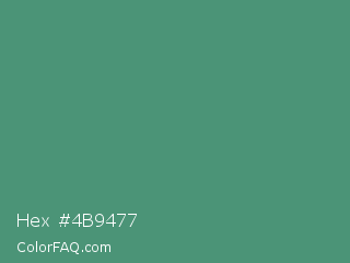 Hex #4b9477 Color is a normal green color and the nearest color is Wintergreen Dream #56887d. Hex code #4b9477 and RGB value is rgb(75,148,119). In RGB color space, this color is composed of 29% red, 58% green, 47% blue, In CMYK color space, this color is composed of 49% cyan, 0% magenta, 20% yellow , 42% black , In HSL color space, this color has a hue angle of 156° , 33% saturation and 44% lightness.