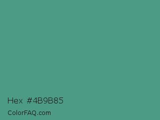 Hex #4b9b85 Color is a normal cyan color and the nearest color is Ocean Green #41aa78. Hex code #4b9b85 and RGB value is rgb(75,155,133). In RGB color space, this color is composed of 29% red, 61% green, 52% blue, In CMYK color space, this color is composed of 52% cyan, 0% magenta, 14% yellow , 39% black , In HSL color space, this color has a hue angle of 164° , 35% saturation and 45% lightness.