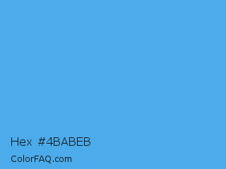 Hex #4babeb Color is a light blue color and the nearest color is Picton Blue #45b1e8. Hex code #4babeb and RGB value is rgb(75,171,235). In RGB color space, this color is composed of 29% red, 67% green, 92% blue, In CMYK color space, this color is composed of 68% cyan, 27% magenta, 0% yellow , 8% black , In HSL color space, this color has a hue angle of 204° , 80% saturation and 61% lightness.