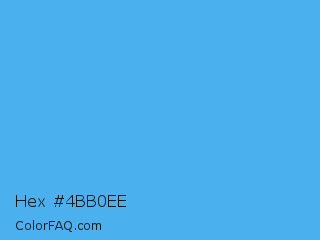 Hex #4bb0ee Color is a light blue color and the nearest color is Picton Blue #45b1e8. Hex code #4bb0ee and RGB value is rgb(75,176,238). In RGB color space, this color is composed of 29% red, 69% green, 93% blue, In CMYK color space, this color is composed of 68% cyan, 26% magenta, 0% yellow , 7% black , In HSL color space, this color has a hue angle of 203° , 83% saturation and 61% lightness.