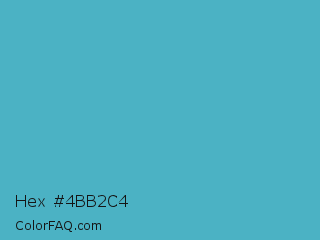 Hex #4bb2c4 Color is a normal cyan color and the nearest color is Maximum Blue #47abcc. Hex code #4bb2c4 and RGB value is rgb(75,178,196). In RGB color space, this color is composed of 29% red, 70% green, 77% blue, In CMYK color space, this color is composed of 62% cyan, 9% magenta, 0% yellow , 23% black , In HSL color space, this color has a hue angle of 189° , 51% saturation and 53% lightness.