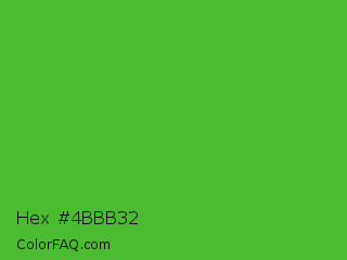 Hex #4bbb32 Color is a normal green color and the nearest color is Apple #4fa83d. Hex code #4bbb32 and RGB value is rgb(75,187,50). In RGB color space, this color is composed of 29% red, 73% green, 20% blue, In CMYK color space, this color is composed of 60% cyan, 0% magenta, 73% yellow , 27% black , In HSL color space, this color has a hue angle of 109° , 58% saturation and 46% lightness.